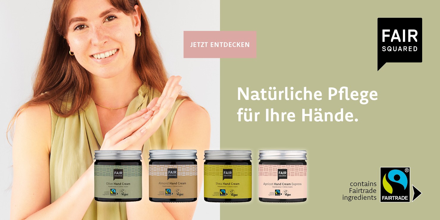 Wir setzen auf die Kraft der Natur. Unsere gesamte FAIR SQUARED Naturkosmetik ist NATRUE-zertifiziert. Dies bedeutet, dass unsere Produkte ausschließlich aus natürlichen Inhaltsstoffen hergestellt werden. Alle Produkte sind frei von gentechnisch veränderten Stoffen sowie Mikroplastik, Palmöl, Mineralölen, Petrochemikalien, synthetischen Duftstoffen und künstlichen Konservierungsstoffen. Die Rezepturen der FAIR SQUARED Produkte werden hausintern entwickelt und ständig überwacht.